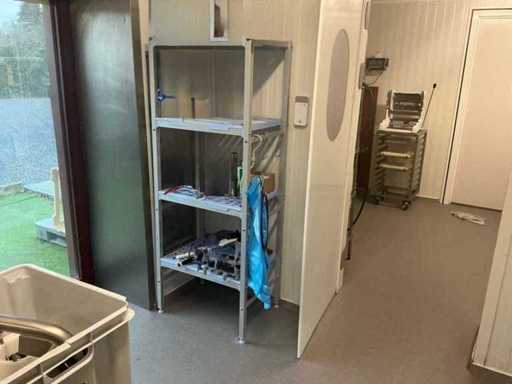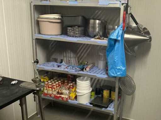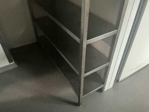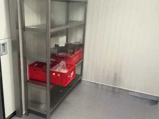 2 racks en acier inoxydable avec 5 étagères et 2 supports en aluminium (3x)