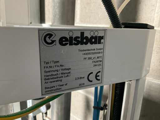 Technique de séchage type PF350_v1_80°C. Equipé d’un moteur SIEMENS et monté sur une base métallique, année de construction 2018.