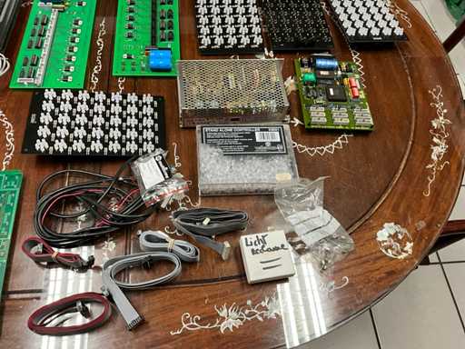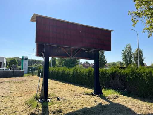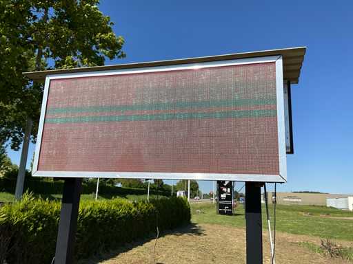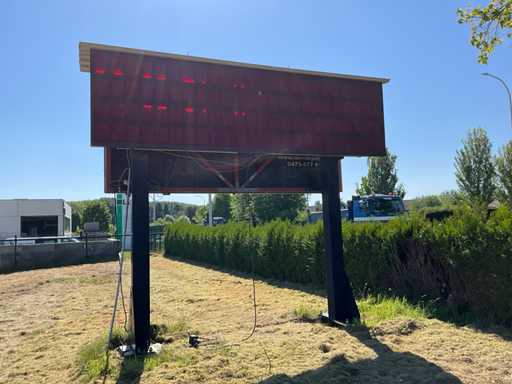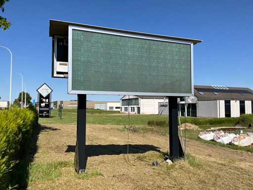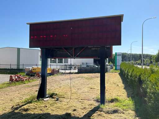 Équipé de 2 panneaux publicitaires LED, dimensions 1x 4100x1100mm et 1x 3600x1620mm, monté sur un cadre métallique avec plaque de base boulonnée, incluant un ordinateur portable, un Dell D630, ainsi que diverses pièces détachées et programme de programmation. Peuvent être démontés et chargés professionnellement par l’acheteur