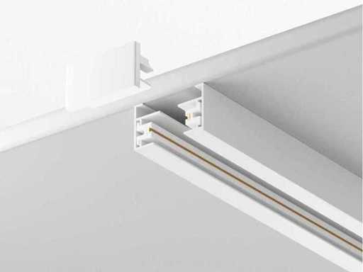 Système de rails adapté aux espaces de travail, aux espaces de réception ou au showroom, également adapté à la cuisine, au salon ou au bureau à domicile. Rapide à installer, monté au plafond ou en suspension possible, installation possible dans les parties droites et les coins. Couleur blanc mat. Y compris les capuchons d’extrémité. Particularités : Il s’agit d’un produit entièrement nouveau, à utiliser avec tous les équipements de piste monophasée de cette vente aux enchères.