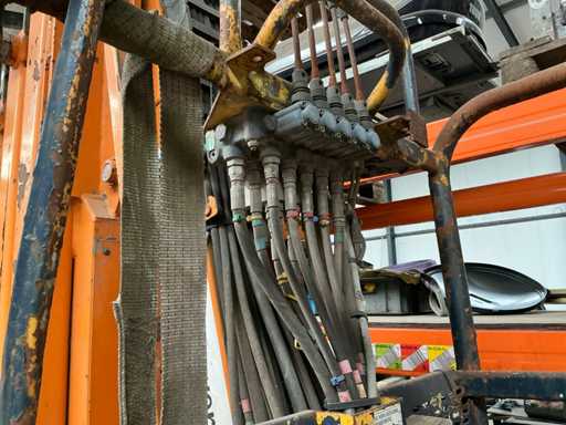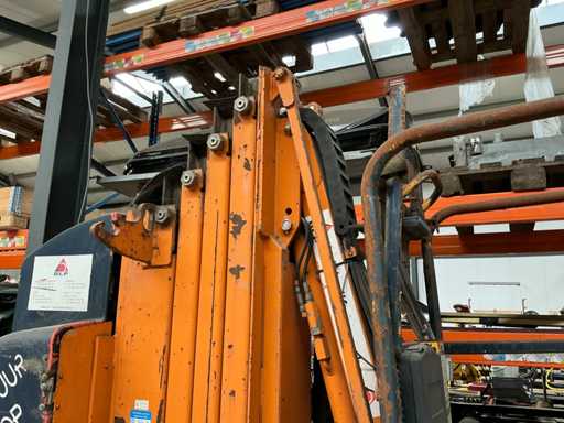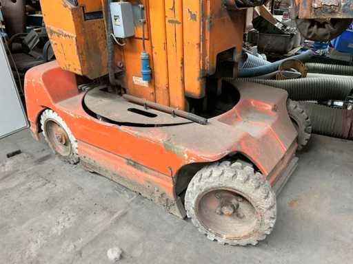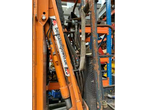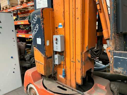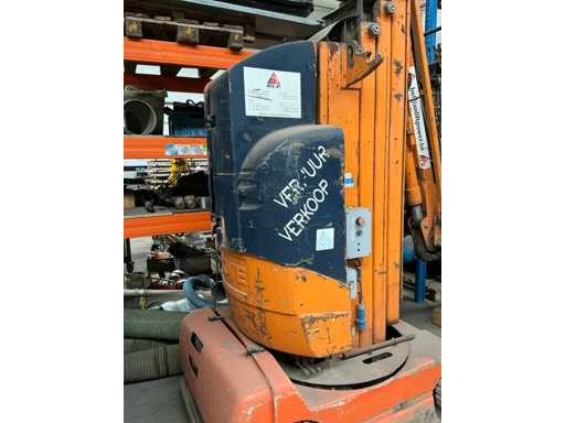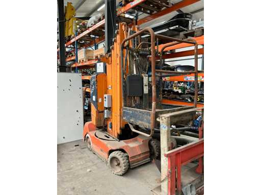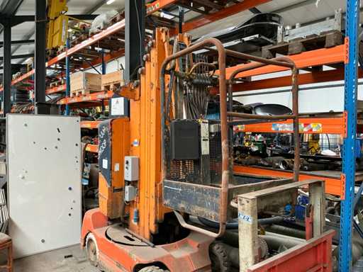 Stocké en état de marche mais les piles doivent être remplacées. Le Grove Toucan 1100A (2000) est une nacelle électrique à mât/nacelle repliable d’une hauteur de travail de 11 mètres, d’une capacité de 200 kg (2 personnes + outils), et d’un port en lourd de 3,5 tonnes. Il est destiné à une utilisation intérieure et extérieure limitée (force de vent max. 5).