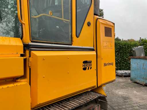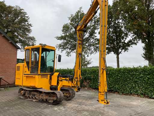 Équipé de : longue bâte pivotante en 3 parties (longueur de la bôme : 8250 mm), plaque de raccordement Herder (265x320 mm), chenilles en acier (largeur de voie 450 mm), fonctions hydrauliques sur la bôme, cabine avec chauffage/ventilation,