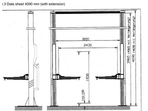 Le pont est démonté et prêt à être transporté - Fonctionnement démonté, complet - avec extension supplémentaire (de 600 mm) à 4690 de haut (voir dessin technique ajouté)