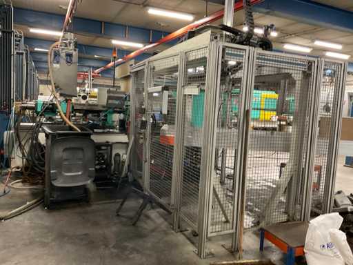 force de serrage : 1300 KN, sans moules ! équipé de : système de robot de décharge, tapis de décharge de transport Virginio (année 2014, 4500x830mm),