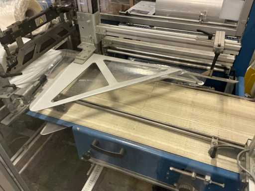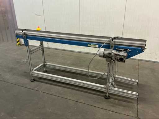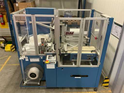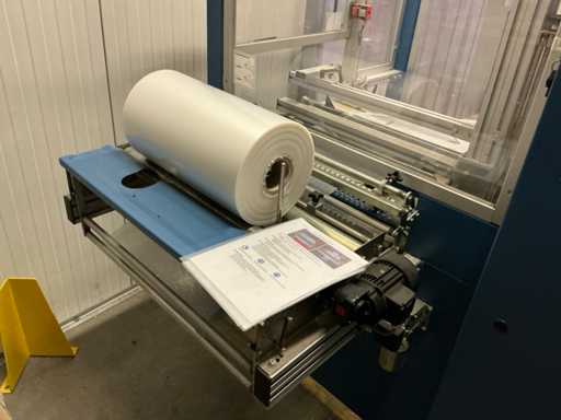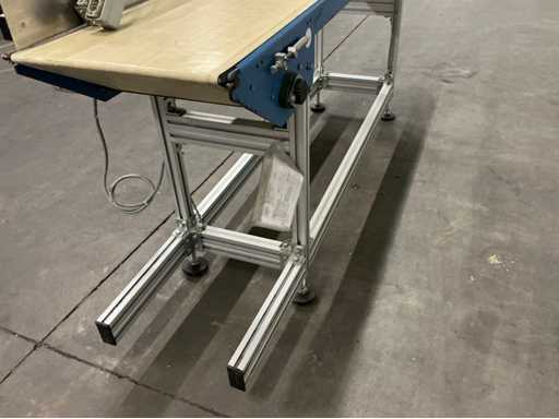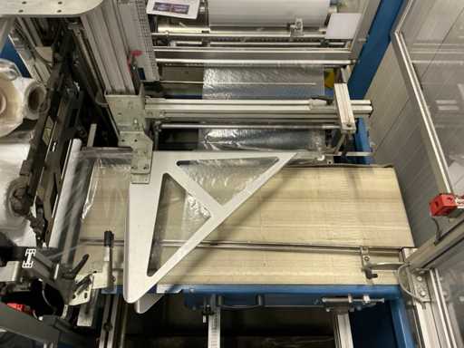 Machine d’emballage de film / scellage. Equipé de : boîtier de protection, panneau de commande, passage automatique de la feuille, options de réglage, alimentation et décharge, connexion 380V et manuel. Y compris la bande transporteuse sortante avec commande. En état de marche.