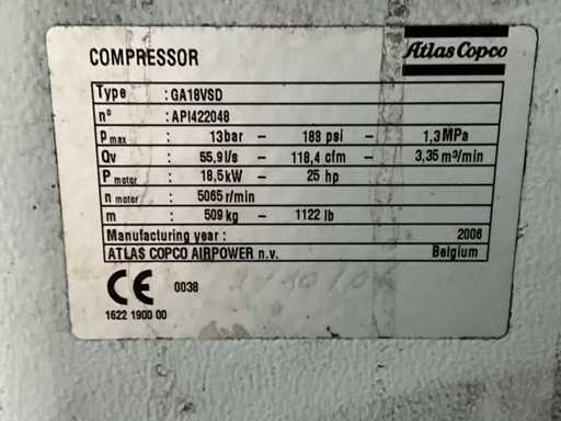 2006 Atlas Copco GA18VSD Compresseur à vis