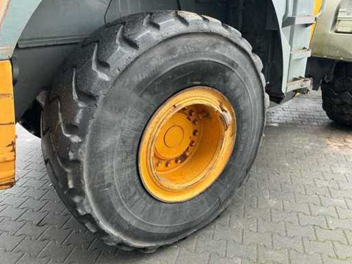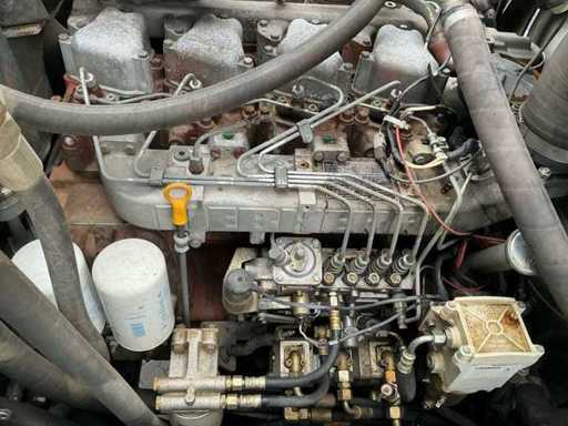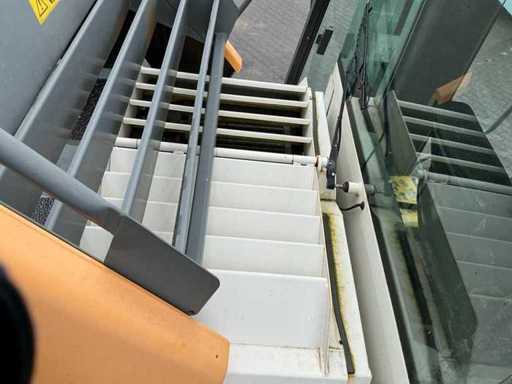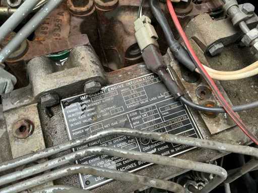 Équipé de : attelage rapide hydraulique Eurosteel, banque avec plaque d’insertion 2750 mm, poids 17900 kg, pneus 23,5 R25, largeur de la sable 2,7 m, capacité de la sable 3,3 m³, longueur 8,00 m, largeur de transport 2,7 m, hauteur de transport 3,355 m, vitesse 40 km/h, rayon de braquage extérieur 6,3 m, modèle série L, constructeur moteur Liebherr, pompe axiale variable dépendante de la charge de direction à piston, point pivotant central avec deux cylindres de direction double action amortis, angle de braquage de 40° (de chaque côté), le joystick « Liebherr » avec commande servo hydraulique, la portance, le neutre, le bas et le flotteur sont contrôlés par le joystick Liebherr, avec verrouillage, cabine ROPS/FOPS, porte verrouillable avec fenêtre coulissante et angle d’ouverture de 180°, vitre de sécurité trempée, colonne de direction et support de joystick réglables, protection contre le roulis ROPS, siège réglable en 6 positions, chauffage et ventilation de cabine, filtre à air frais, mode recirculation et chauffage, climatisation, contrôle de la conduite, Coup de patrouille, phares, feux arrière, feux de travail avant, feux de travail arrière, interrupteur principal de batterie, barre de remorquage, liaison Z-bar, documentation d’origine, double écrou à œil monté sur les jantes de l’essieu avant.