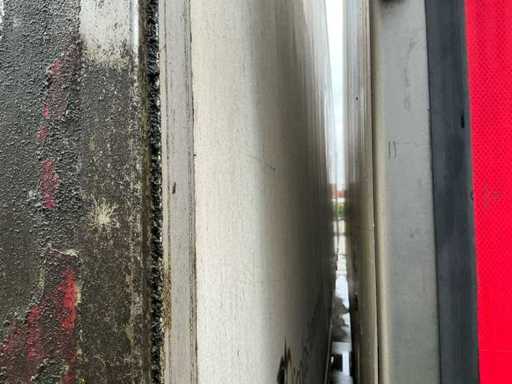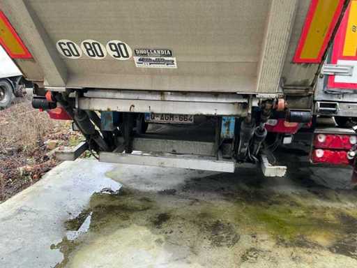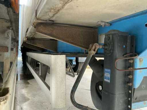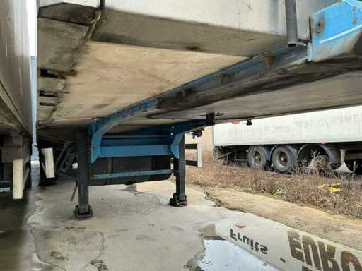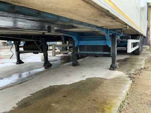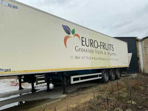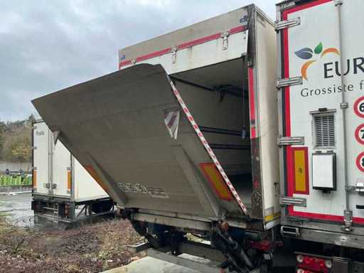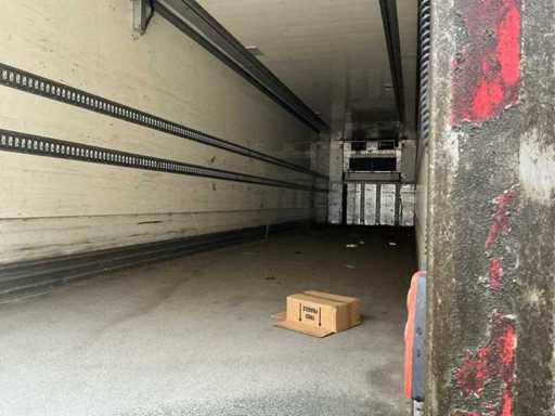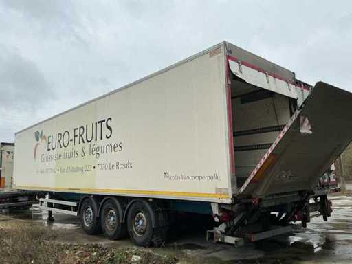 Semi-remorque avec compartiment réfrigéré et hayon.