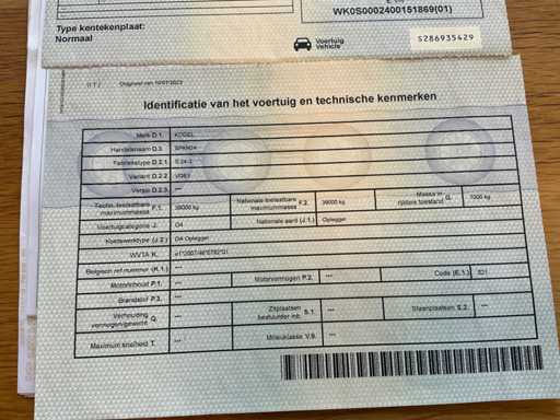 Hayon coulissant. Superstructure à réparer par l’acheteur. Freins à disque SAF. Suspension pneumatique.