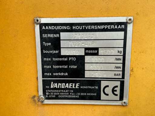 2012 Vandaele TV 27-40 Déchiqueteur à bois