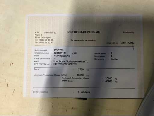 • Catégorie de véhicule : T1 (Tracteur agricole/forestier)