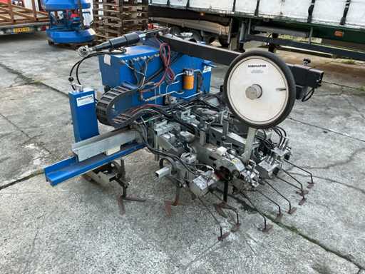 Équipé d’un changement de vitesse latéral ; Dynamo propre ; de sa propre pompe hydroélectrique ; Système d’exploitation; PTO; maillon supérieur hydraulique pour le nivellement ; schéma de voies ; Au moyen d’un système de caméra, la machine bête dans la rangée (entre les plantes) une houe contrôlée par caméra ; Équipé de son propre Wi-Fi pour que vous puissiez regarder avec votre propre téléphone. Largeur de travail possible de 1500 à 2000 mm, équipée d’une pièce supplémentaire pour 5 rangées. Les rangs peuvent être ajustés de façon variable.