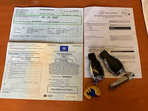 Voiture particulière 1TDV768, châssis n° WDC1569421J437193, première utilisation 05-10-2017, documents de bord belges uniquement partie 2 immatriculation manquante, 2x clé ok