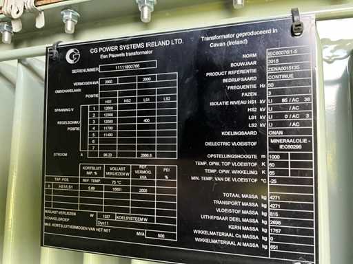 2018 CG POWER SYSTEMS ZENA0015135 Transfo