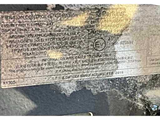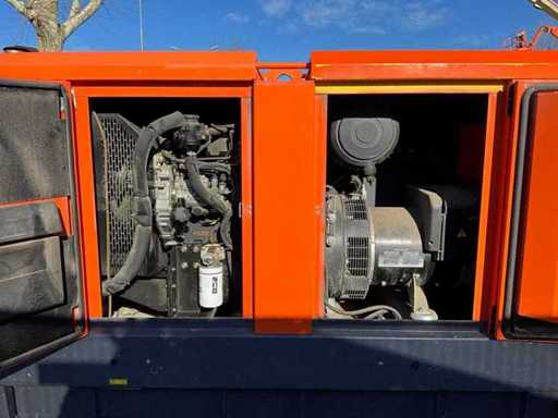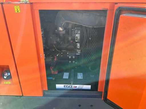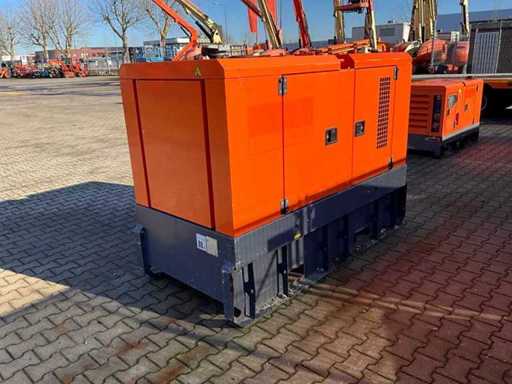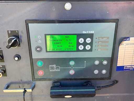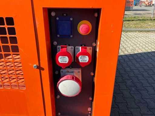 insonorisé ; connexion : 1x 230 Volts - 16 ampères ; 1x 400 volts - 16 ampères ; 1x 400 volts - 32 ampères ; 1x 400 volts - 63 ampères ; capacité du réservoir de carburant 298 litres ; connexion externe du réservoir de carburant ; consommation à charge maximale de 14 litres/heure ; fentes pour fourches élévateurs ; conditions de travail ;