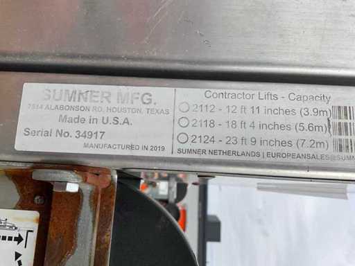 2019 Sumner Manufacturing 2118 Levage de matériaux/levage en canal