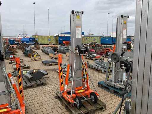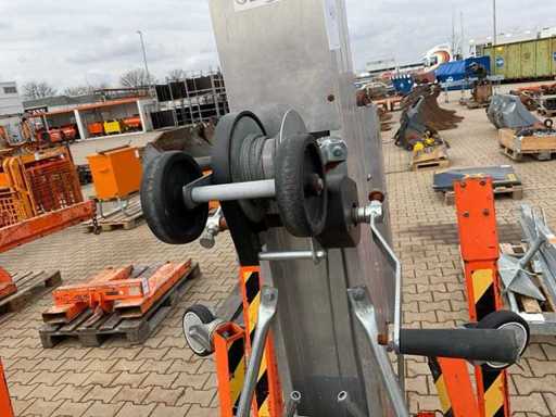 Manuel : Oui ; Max. hauteur de levage : 5500 mm ; Max. capacité de levage : 296 kg ; taille totale L : 860 mm ; taille totale M : 800 mm ; dimension globale H : 2130 mm ; poids propre : 146 kg ; Description : Manuellement ; mobile ; acier galvanisé ; treuil en câble métallique ; base repliante ; treuil en câble métallique ; Application : travaux de maintenance / assemblage / travaux d’installation ; conditions de fonctionnement non vérifiées ;