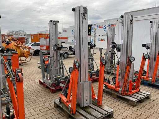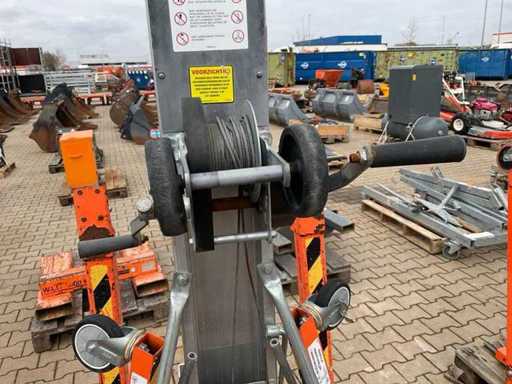 Manuel : Oui ; Max. hauteur de levage : 5500 mm ; Max. capacité de levage : 296 kg ; taille totale L : 860 mm ; taille totale M : 800 mm ; dimension globale H : 2130 mm ; poids propre : 146 kg ; Description : Manuellement ; mobile ; acier galvanisé ; treuil en câble métallique ; base repliante ; treuil en câble métallique ; Application : travaux de maintenance / assemblage / travaux d’installation ; incomplet ; Conditions de fonctionnement non vérifiées.
