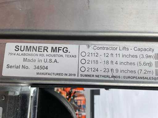 2019 Sumner Manufacturing 2118 Levage de matériaux/levage en canal
