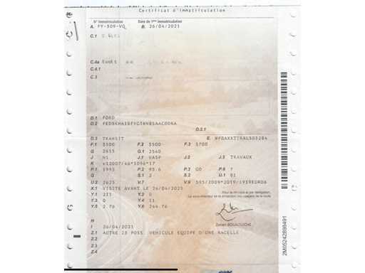 Carte grise : VASP Travaux – Véhicule équipé d’une nacelle