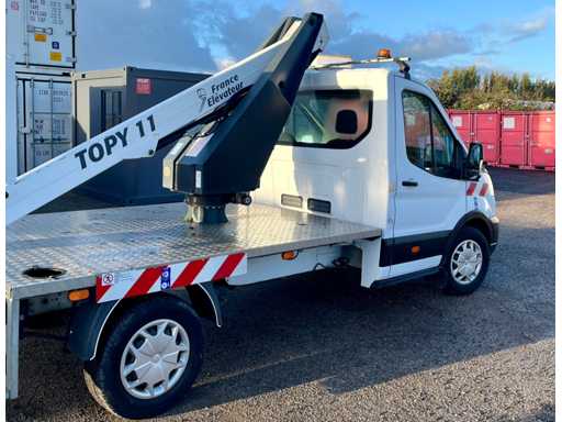 Véhicule utilitaire spécialisé Ford Transit 350, équipé d’une nacelle France Élévateur TOPY 11.