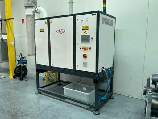 Pour l’usinage de la feuille en blocs de bordure via cette unité, mesurée sans la version/tube d’environ 155 cm, ainsi que l’unité d’extraction à 1 mâchoire sur le dessus de la machine. Les deux sont inclus et peuvent être démontés si nécessaire. Équipé d’un panneau de commande tactile Simatic HMI SIEMENS.
