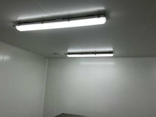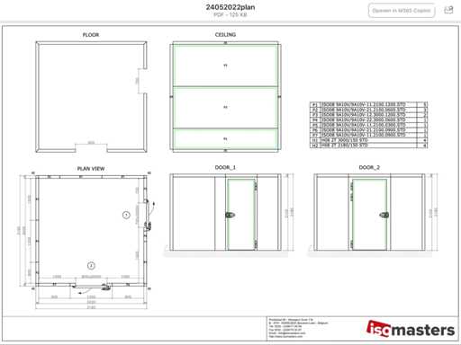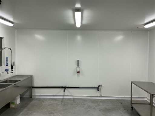 Al de afmetingen van de koelcel en atelier staan op het plan.