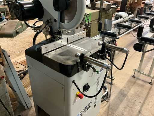Cette machine est en très bon état et a été à peine utilisée. Manuel et accessoires disponibles. Les deux rouleaux ont une taille de 420 cm. Pour l’aluminium, le PVC et le bois.