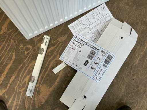 Mise en avant : Jamais utilisée encore en boîte. Radiateur à panneaux en acier 4-Connexions Naked All In type 11, taille 500 × 800 mm (h × w), équipé de 4 connexions, adapté aux installations de chauffage central, avec une puissance thermique d’environ 594 W (ΔT50).