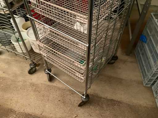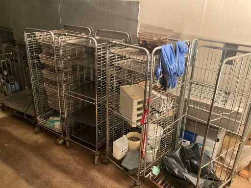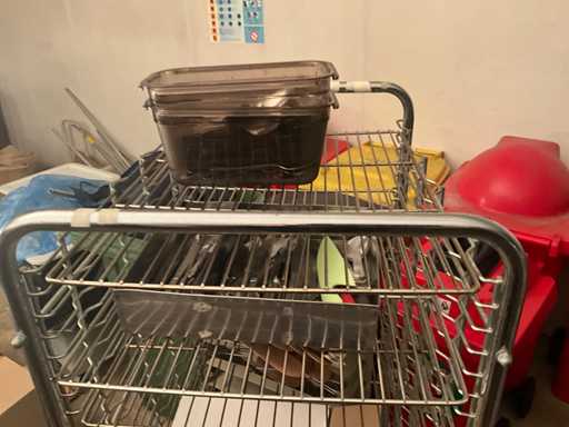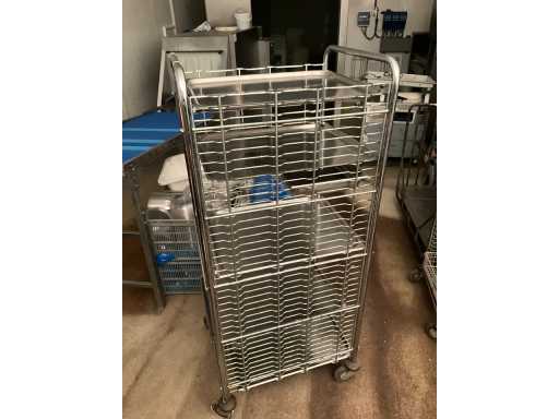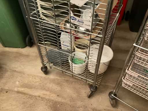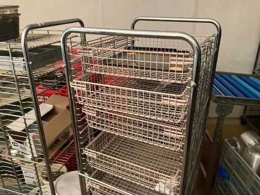 3 chariots de transport métalliques mobiles avec PLM DIM: 59x71x165cm, avec chariot postal avec AFM PLM: 72x84x168 cm et chariot en métal avec AFM PLM: 70x107x106cm complet avec contenu, situé dans la salle 76