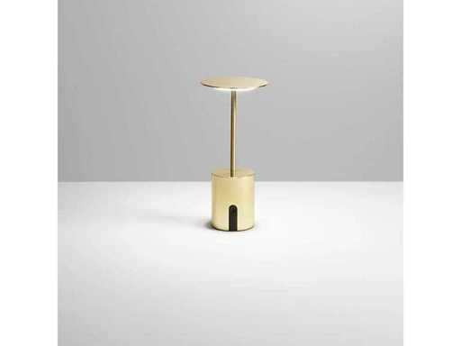 Ces lampes à design italien sont non seulement magnifiques à regarder pendant la journée, elles offrent aussi une lumière d’ambiance particulièrement belle en soirée. Les lampes de table conviennent à la fois à l’intérieur et à l’extérieur, sont dimmables mais aussi rechargeables et peuvent donc être utilisées sans prise électrique. Les lampes brûlent environ 7 à 8 heures avec une charge complète, sont étanches aux éclaboussures et peuvent donc être utilisées en toutes saisons. Dimensions : Ø100x220mm, Couleur : Or, finition brillante. Éclaboussure : Oui, IP44, Source lumineuse : 2 Watts LED Type : 300 lumens, dimmagable : oui