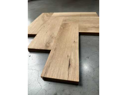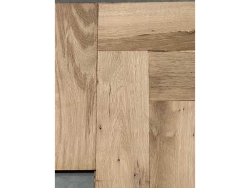 Parquet massif en chêne de 90,62 m2, peut également être posé verticalement, non traité, languette et rainure peuvent être collées, dimensions : 40x12 cm, 20mm d’épaisseur