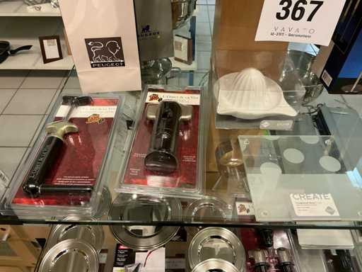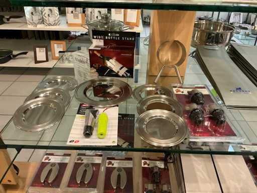 Y compris des découpeurs à vin, des bouchons à vin, des tire-bouchons, des sous-verres, des sacs à bouteilles, 6x panneaux en acier inoxydable, des porte-vins, un extracteur à presses...