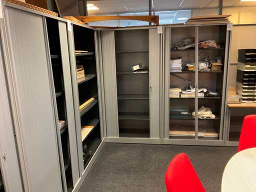 8x taille 1200x450x1950mm et 1x taille 1000x450x715mm avec étagère supérieure, le tout avec divers contenus