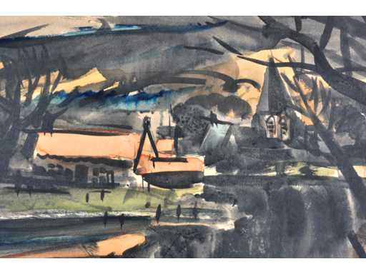 Albert Saverijs - Église de Latem aan de Leie - aquarelle