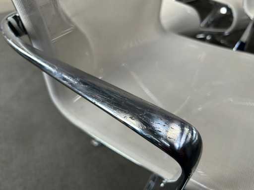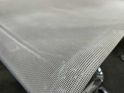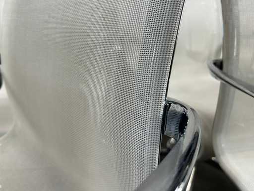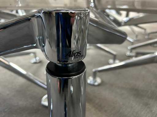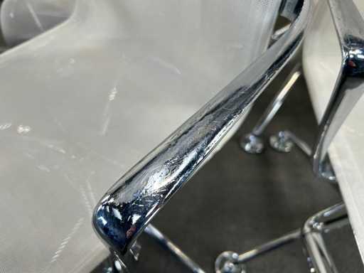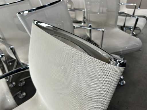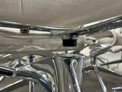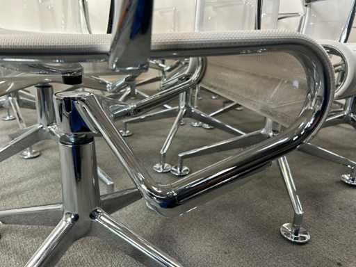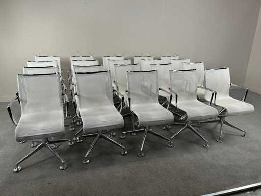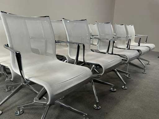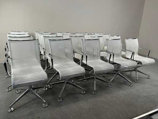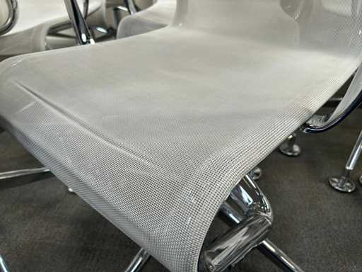 Beaucoup de 6 chaises de conférence Alias en maille blanche sur une base métallique.