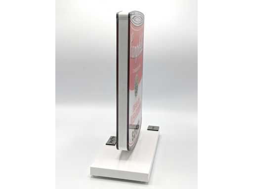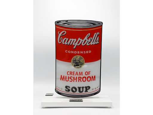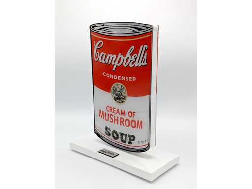 Sculpture en verre acrylique de l’iconique Campbell Soup de Warhol.