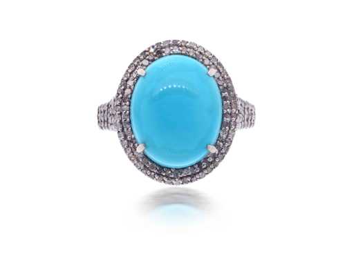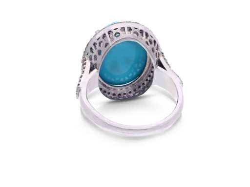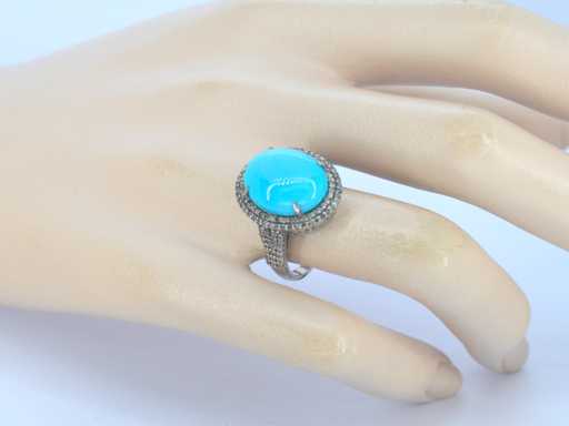 Bague avec un grand ovale turquoise et diamants