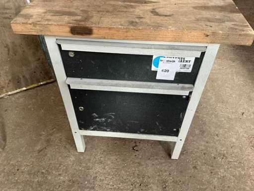 Armoire en métal avec plan de travail en bois, 1 tiroir et 1 porte