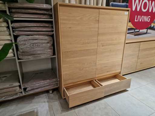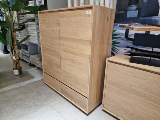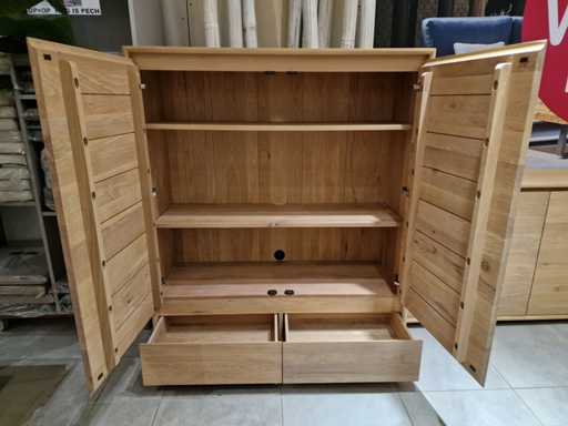 Armoire bar en chêne Craftwood Lalisa Solid - 2 portes battantes + 2 tiroirs