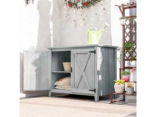 Armoire de jardin en bois, placard de jardin en bois avec étagères et double portes