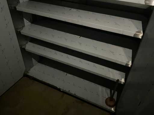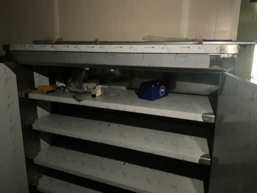 Armoire de rangement en acier inoxydable vv 4 étagères, située dans la pièce 90 au-delà de la porte battante