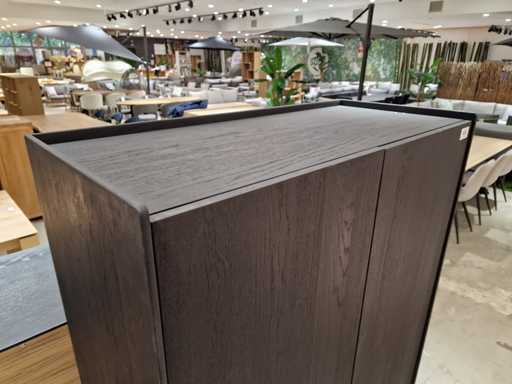 Armoire en bar en chêne Castle-Line Zion 103 x 47 x H167cm 2 portes - Chêne massif noir avec cadre noir - Design belge