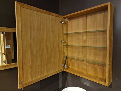 Armoire miroir en teck en teck Rome 70 x 17 x H90cm laissée ouverte avec étagères en verre - teck de qualité A