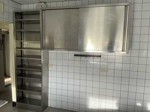 Comprend : installation de vaisselle en acier inoxydable, micro-ondes professionnel Whirpool Pro 2860, établi réfrigéré professionnel en acier inoxydable, réfrigérateur professionnel Gram K1270, meuble chauffant, machine expresso, grill Giorik SHS20G, meuble mural en acier inoxydable AGMA.