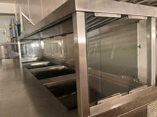 Établi de refroidissement vv support en acier inoxydable avec parois vitrées, situé dans la salle 90
