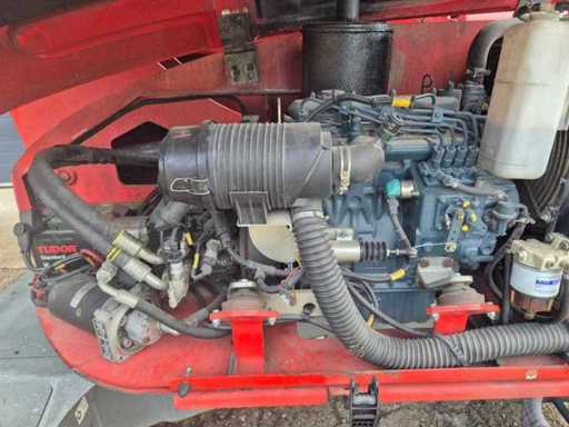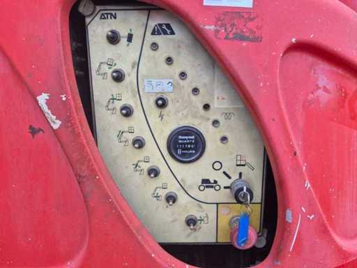 Équipé de : ATN Zebra 12, année de fabrication : 2011, poids propre (GVW) : 5,150 kg, max. Capacité de la plateforme : 230 kg, max. Vitesse : 4,5 km/h, maximum. Inclinaison : 40 %, Hauteur de la plateforme : environ 10,00 m, Conception du terrain 4x4, Contrôle proportionnel du mécanisme d’entraînement et de levage, Capteur de surcharge, Hauteur de travail 12,20 m, Hauteur de la plateforme 10,20 m, Portée horizontale 8,50 m, Hauteur de dégagement 4,42 m, Capacité de levage 230 kg, Rotation de la plaque tournante 2x178°, Rotation de la plateforme 2x90°, Rotation de la perche 133°, Largeur de la plateforme 1,45 m, Longueur de la plateforme 0,80 m, Largeur de la plateforme : 0,80 m, Largeur - Pliée 6,05 m, Hauteur - Pliée 2,11 m, Longueur - Pliée 4,50 m, Hauteur - plié 2,68 m, empattement 2,00 m, centre de garde au sol 0,39 m, rayon de braquage - intérieur 1,57 m, rayon de braquage - extérieur 4,00 m, pneus 33x12x20, vitesse de course - plié 6 km/h, vitesse de course - déplié 1 km/h.