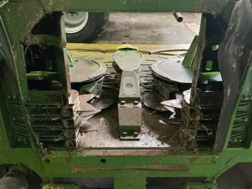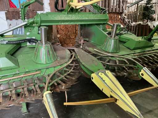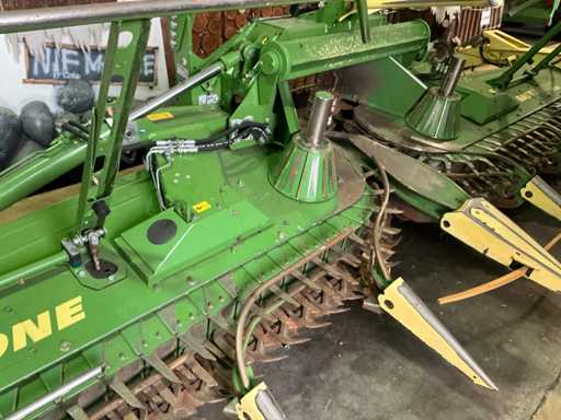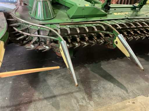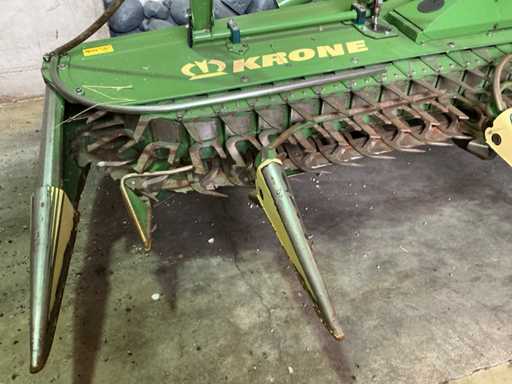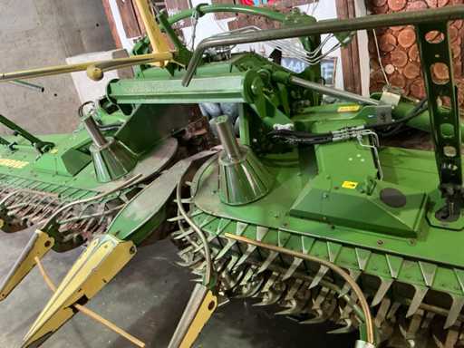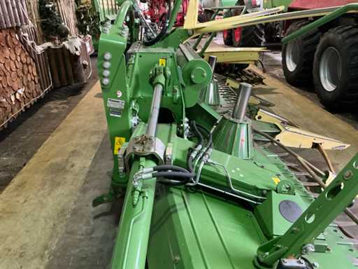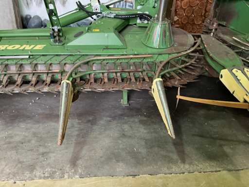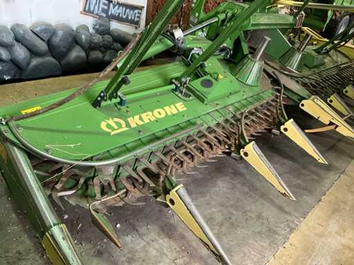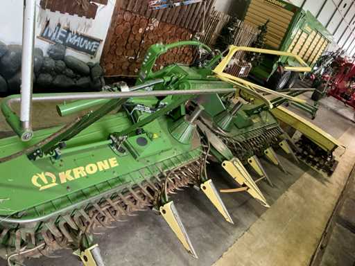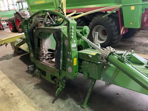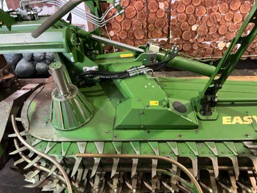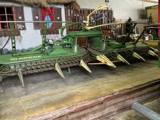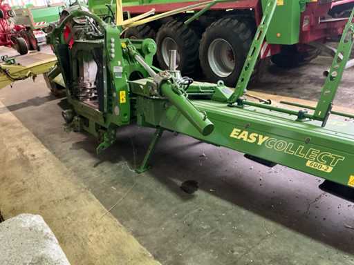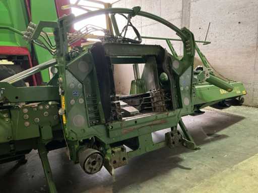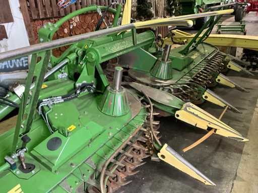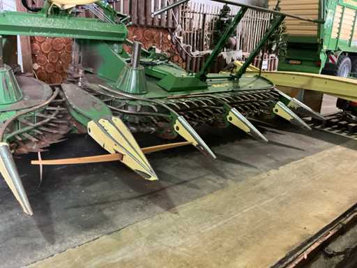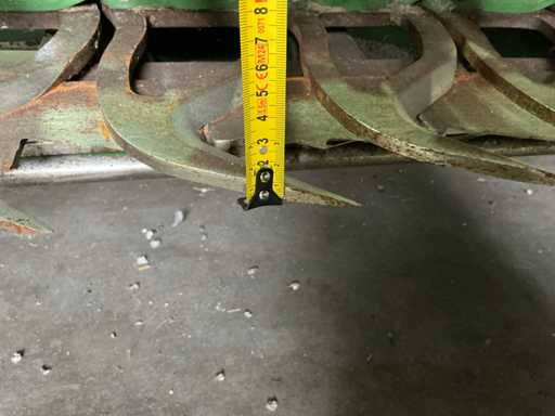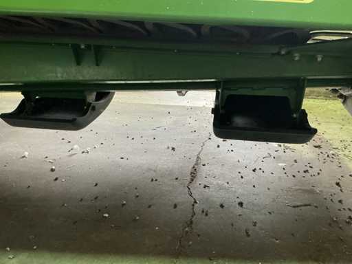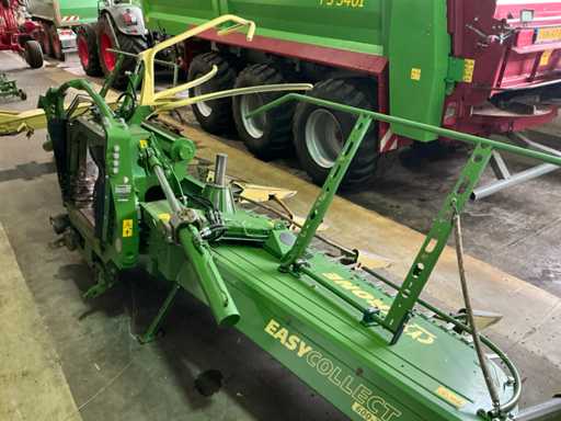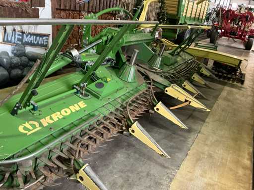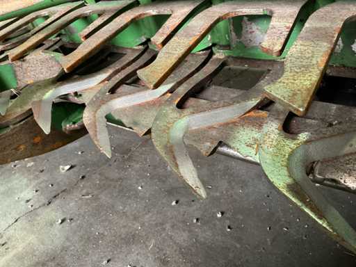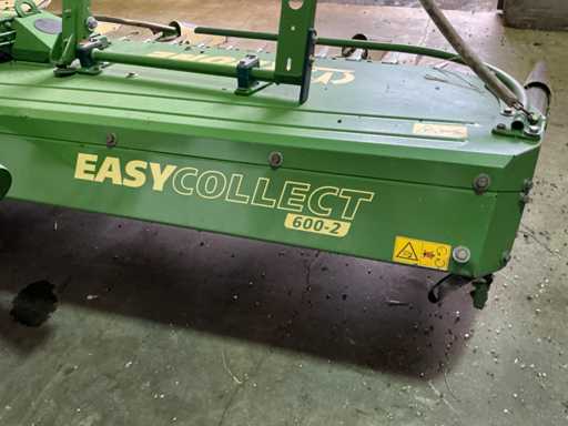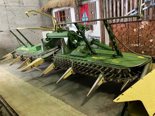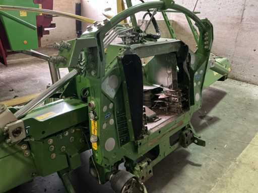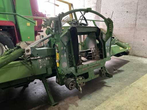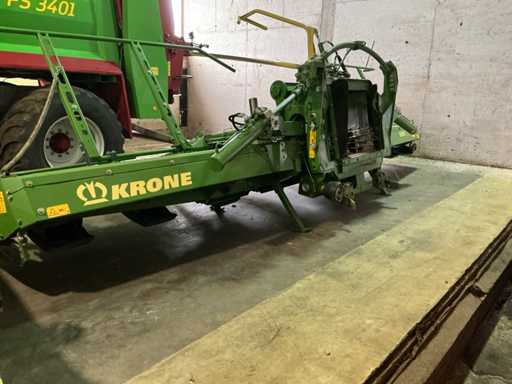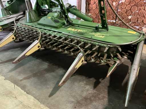Équipé de : De très jeunes couteaux : épaisseur du couteau à l’avant : 1 cm, épaisseur du couteau à l’arrière 1 cm. Ce Krone EasyCollect 600-2 a une largeur de travail de 6 mètres (adapté à 8 rangs sur 75 cm), une largeur de transport d’environ 3 mètres (plié), est entraîné mécaniquement/hydrauliquement via la moissonneuse de fourrage, est hydrauliquement pliable avec une construction centrale pliante, pèse environ 2 500 à 3 000 kg et est conçu pour la récolte du maïs avec des moissonneuses autopropulsées Krone Big X, telles que la 500, séries 600, 700 et 850.