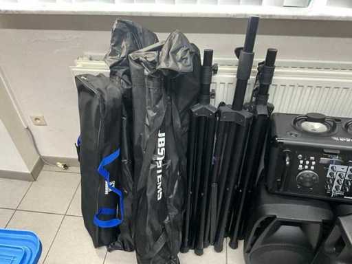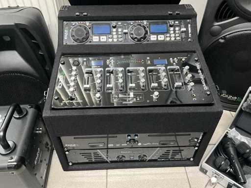 Comprenant 2 consoles de mixage Ibizasound, 2 enceintes Ibizasound, 2 enceintes Divine, 1 enceinte QTX, 5 microphones différents dont Sennheiser, 9 talkies-walkies différents, 2 tourne-disques Lenco différents, 6 supports différents, un boîtier de vol et divers câblages, système Hi-Fi Pioneer