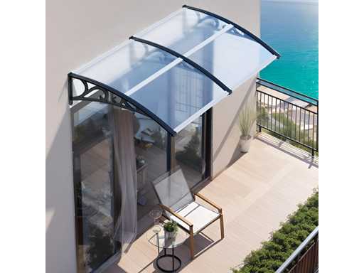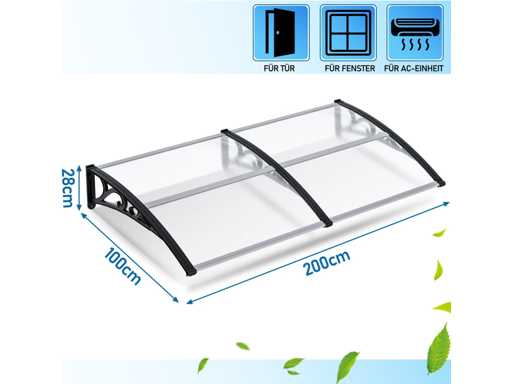 Auvent de Porte d'Entrée 100x200 cm, Toit en Polycarbonate 5 mm avec Structure ABS